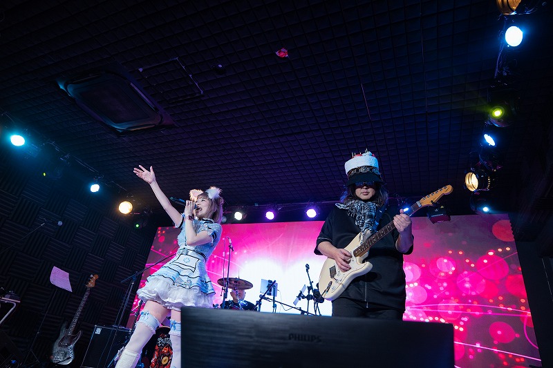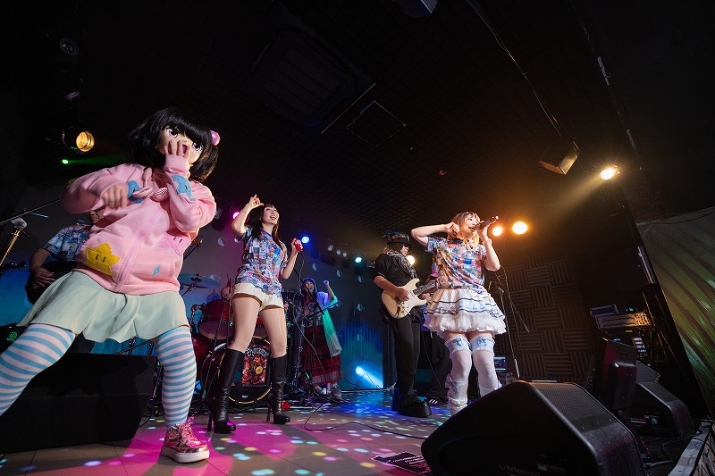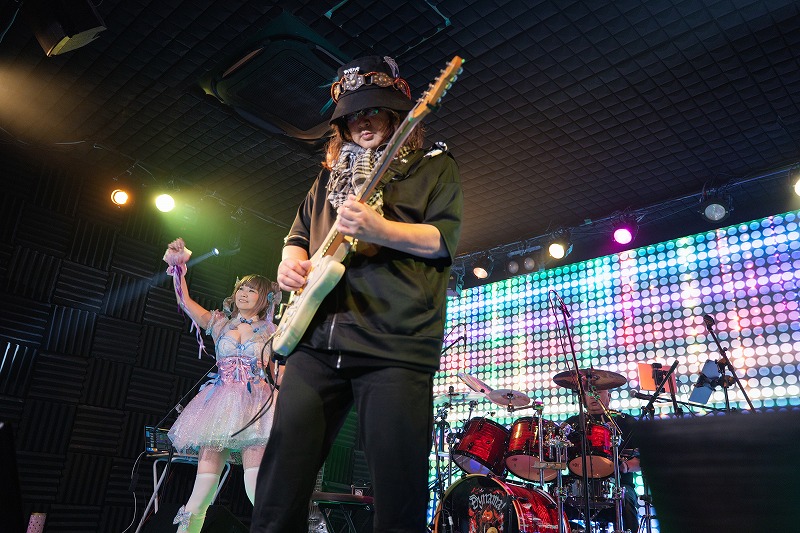 ULTRA-PRISMとLittle Non.のコラボコーナーでは、ULTRA-PRISMのライブのドラム演奏も手がける大生伊藤がヴォーカルを担い、「音楽戦隊(ミュージックレンジャー)ダイナマン」と称した戦隊風曲の『ダイナマン』を雄々しく歌いあげた。勢いよく歌う彼の気持ちを煽るように、うさぎちゃんが熱い合いの手を入れ、フロアのオーディエンスもボルテージを上げていく。途中に、SODのメンバーがケーキを携えて登場し、アニキを祝う場面も生まれていた。