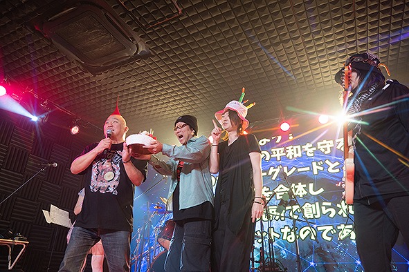 『ダイナマン』も『SODのテーマ2』もうさぎちゃんが製作した動画だが、『SODのテーマ2』は秋葉原のホコ天から産まれたLittle Non.の歴史をなぞるような編集になっているのが心憎い。途中からは、アニキがギターを置いて、歌で参加。またしてもケーキコントを挟み、うさぎちゃんが、紙吹雪を降らせる演出をして、アニキの誕生日をみんなで祝っていた。