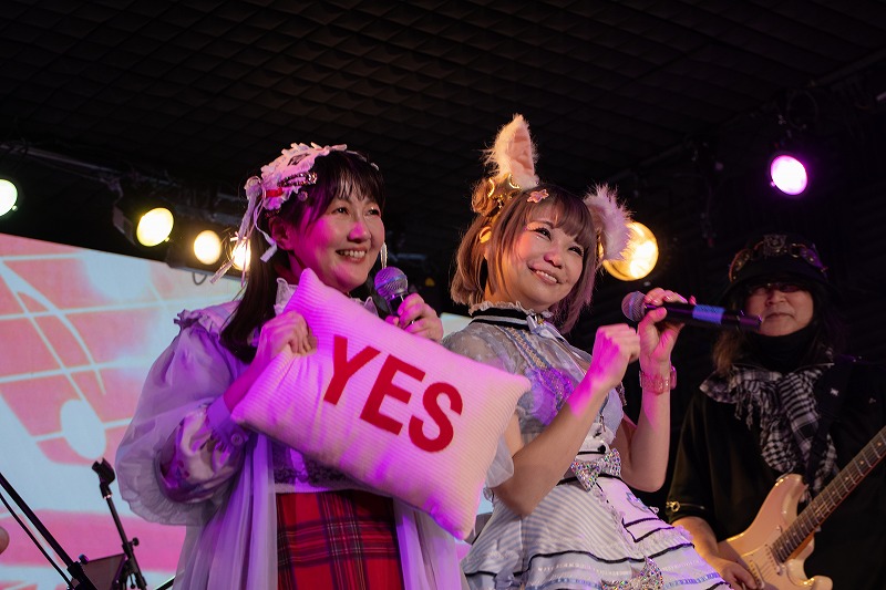 最後に届けた、ナースウィッチ小麦ちゃんマジカルて」のキャラクターソング『ムギまるロック』も、アニキの作編曲した楽曲。オケが存在しないので改めてトラックを作った曲。うさぎちゃんは、ムギまるを手にして中原小麦役の桃井はるこの周りを飛び回らせる。気持ちを熱く騒がせるロックンロールナンバーに乗せ、この曲でも「ムギ!ムギ!」の声が飛び交えば、その場で飛び跳ねる人たちが生まれていた。小池アニキの新旧のユニットのコラボレーション。まさにこの3人、最高のパートナーズだ。