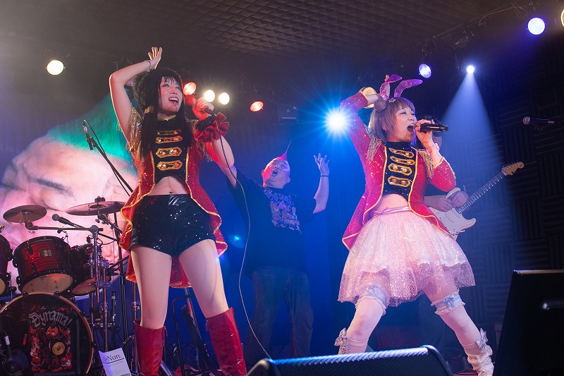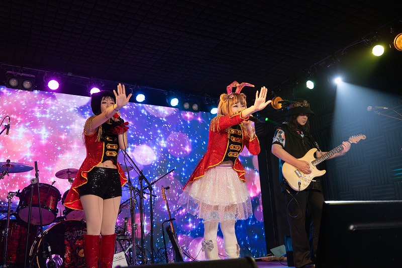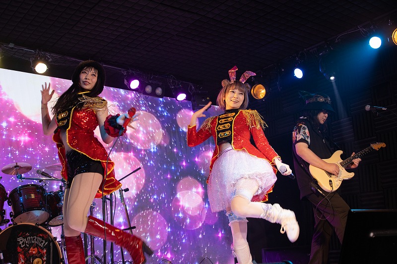 次に届けたのが、Little Non.のドラマーであり、この日のULTRA-PRISMのドラムも担っていた大生の歌う『音楽戦隊ダイナマン』。それを、うさぎちゃんとノゾミのガールズユニットスタイルで寸劇も入れて歌ってくれた。愛と勇気と夢と正義を詰め込んだ勇壮な曲を、2人は心をヒーローに染め上げて凛々しく歌いあげる。女性陣2人が歌う『音楽戦隊ダイナマン』、とても新鮮なのはもちろん、歌唱中ずっと、2人が戦う女戦士(ファイター)に見えていた。観客たちの熱いエールも、この曲を勇ましく彩る嬉しい魅力になっていた。