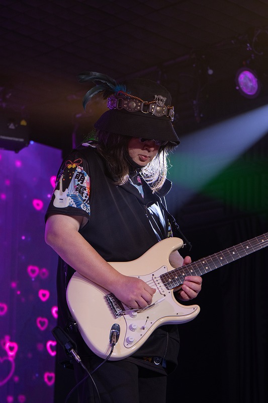 アンコール前に、作詞家であり、ミュージシャンの畑亜貴さんから届いた手紙を、うさぎちゃんが代読し、お茶目な笑いを誘い出した後、アンコール1曲目は、この日出演したボーカル陣とのコラボステージを展開。最初に届けたのが、うさぎちゃん、桃井はるこ、ノゾミの3人の女性シンガーがコラボレートした『SHOW_TO_SHI・TA・I』。キラキラとしたシンフォニックでロックンロールしたエレクトリックなオーケストラ風の楽曲に乗せて、愛らしい乙女に心を染めあげた3人が、ステージの上で無邪気に弾けていた。その姿に触れ、場内中の人たちも同じように心をキラキラに染め上げて楽しんでいた。アニキのドラマチックなギターソロに気持ちを奮い立てた観客たちが、熱情した声を張り上げれば、3人の乙女たちに煽られるままにはしゃいでいた。