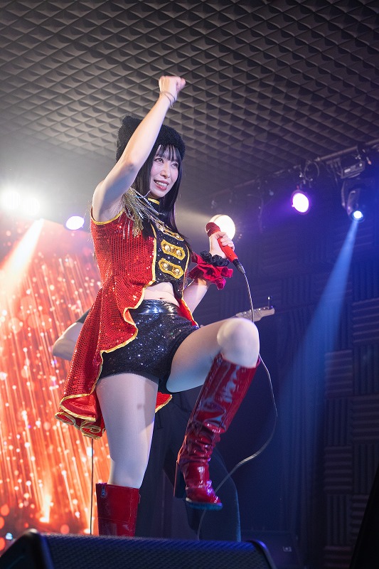 インディーズ時代に秋葉原の路上でライブを行っていた頃からずっと歌い続けてきたのが、アニメ『落語天女おゆい』のオープニングテーマにも起用になった『サクラサク』。たくさんの三三七拍子の手拍子が鳴り響く中、ノゾミ自身が心を明るく軽やかに解き放ち、 眩しい歌の光をフロア中へ降り注ぐように歌えば、一人ひとりの心に満開の笑顔の花を咲かせていった。最後、「頑張れー」とフロアから熱い声が飛び交っていた様も印象的だった。