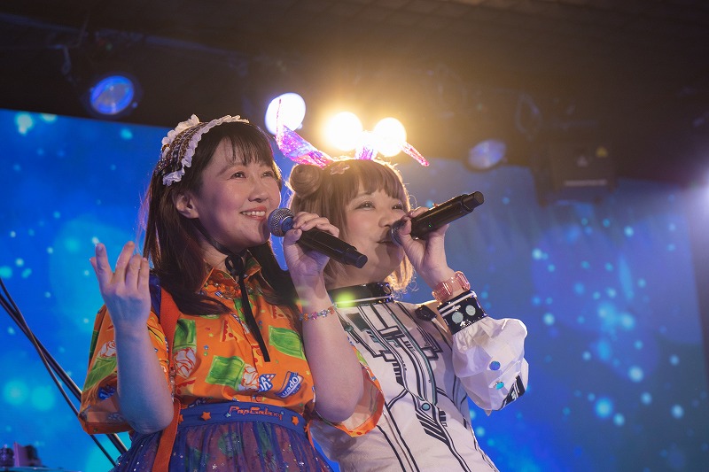 イベントも、ついにトリのULTRA-PRISMへ。最初に届けたのが、新幹線での遠征旅をテーマにした『Let’s go Tripる☆』。キラキラバビューンと、眩しくもカラフルな音の輝きを振りまいて楽曲が走りだしたULTRA-PRISM。1曲目からこの空間をときめいた世界に染め上げていったのが嬉しい。続く『ぷらすちっく☆思考』でも2人は、HYPERな電波のビートを走らせながら、この空間をキラキラした世界に染めあげていった。早口で愛らしく歌ううさぎちゃんの声も、ハートをキュンと萌えさせた。